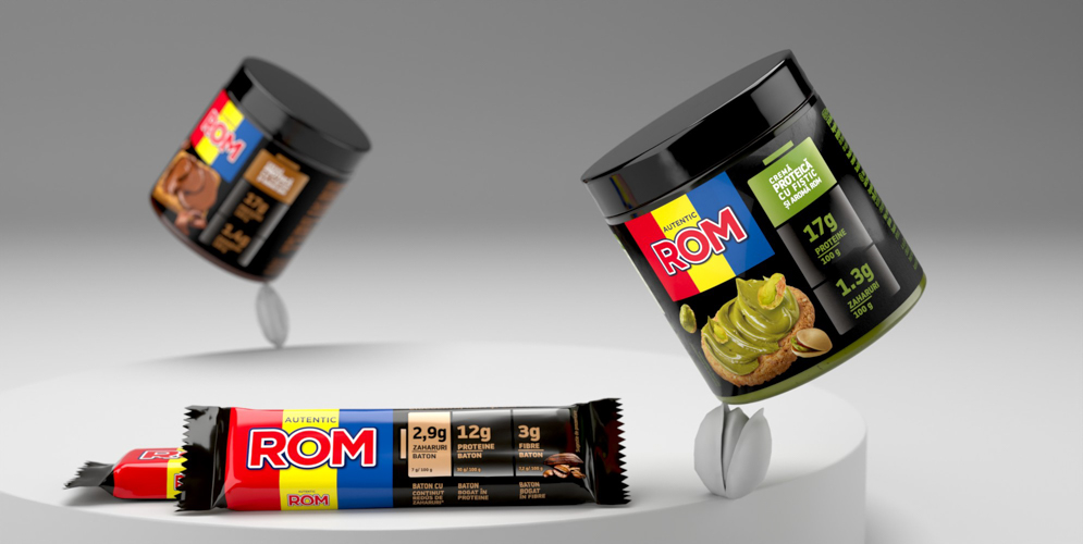 Lansarea gamei ROM Proteină în 2022, prin cele două batoane proteice, a fost prima demonstrație a modului în care noul limbaj vizual poate susține o categorie funcțională fără a pierde din identitatea emoțională și iconică a brandului.